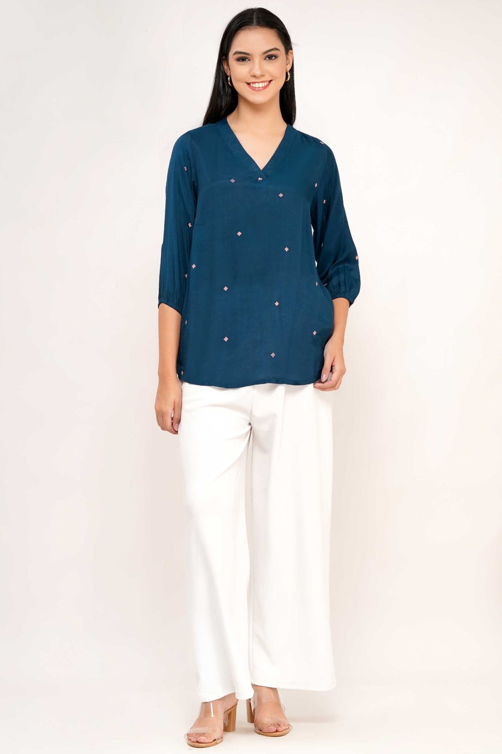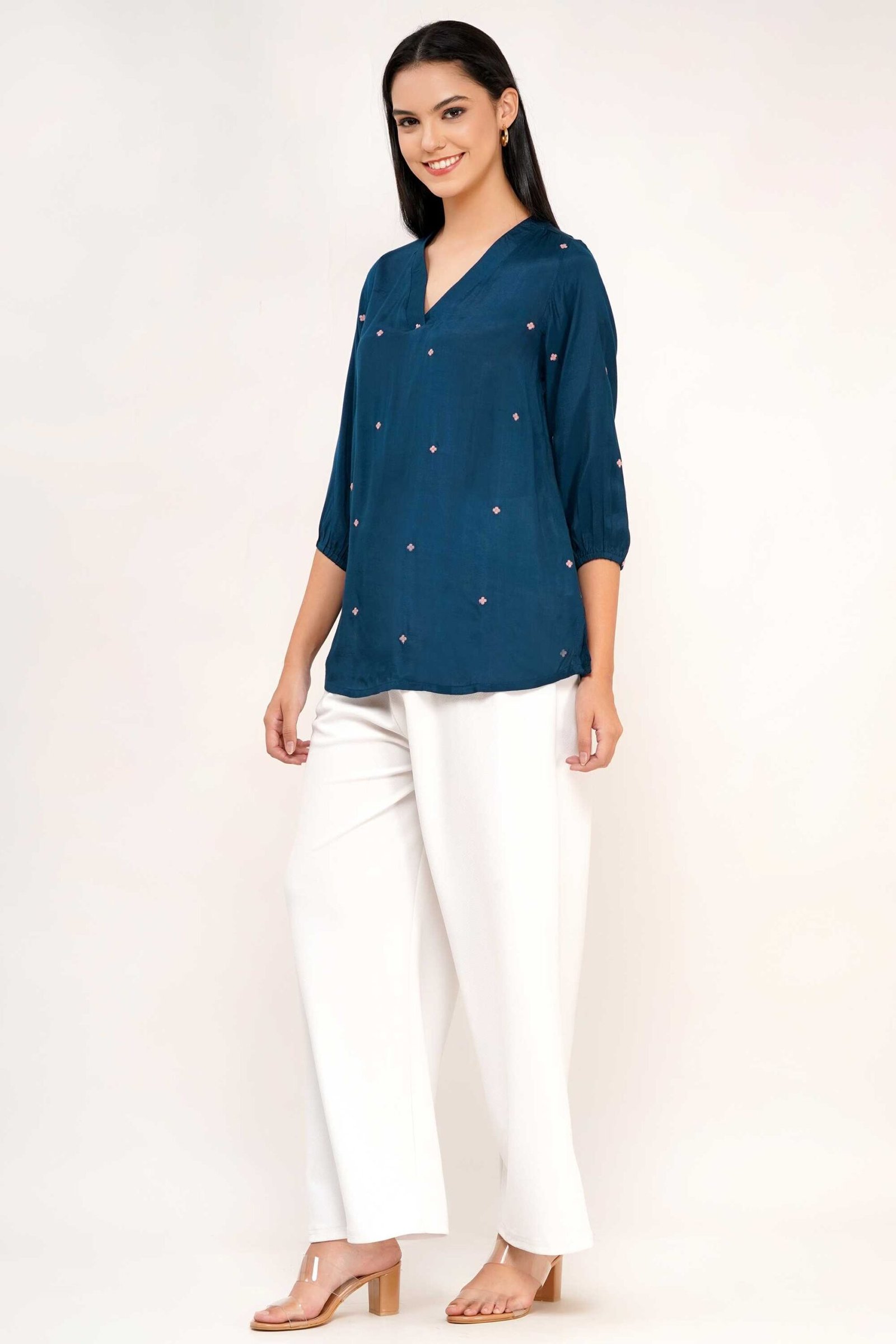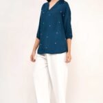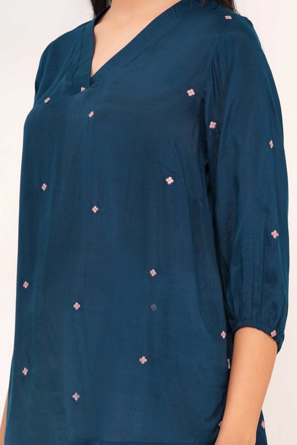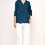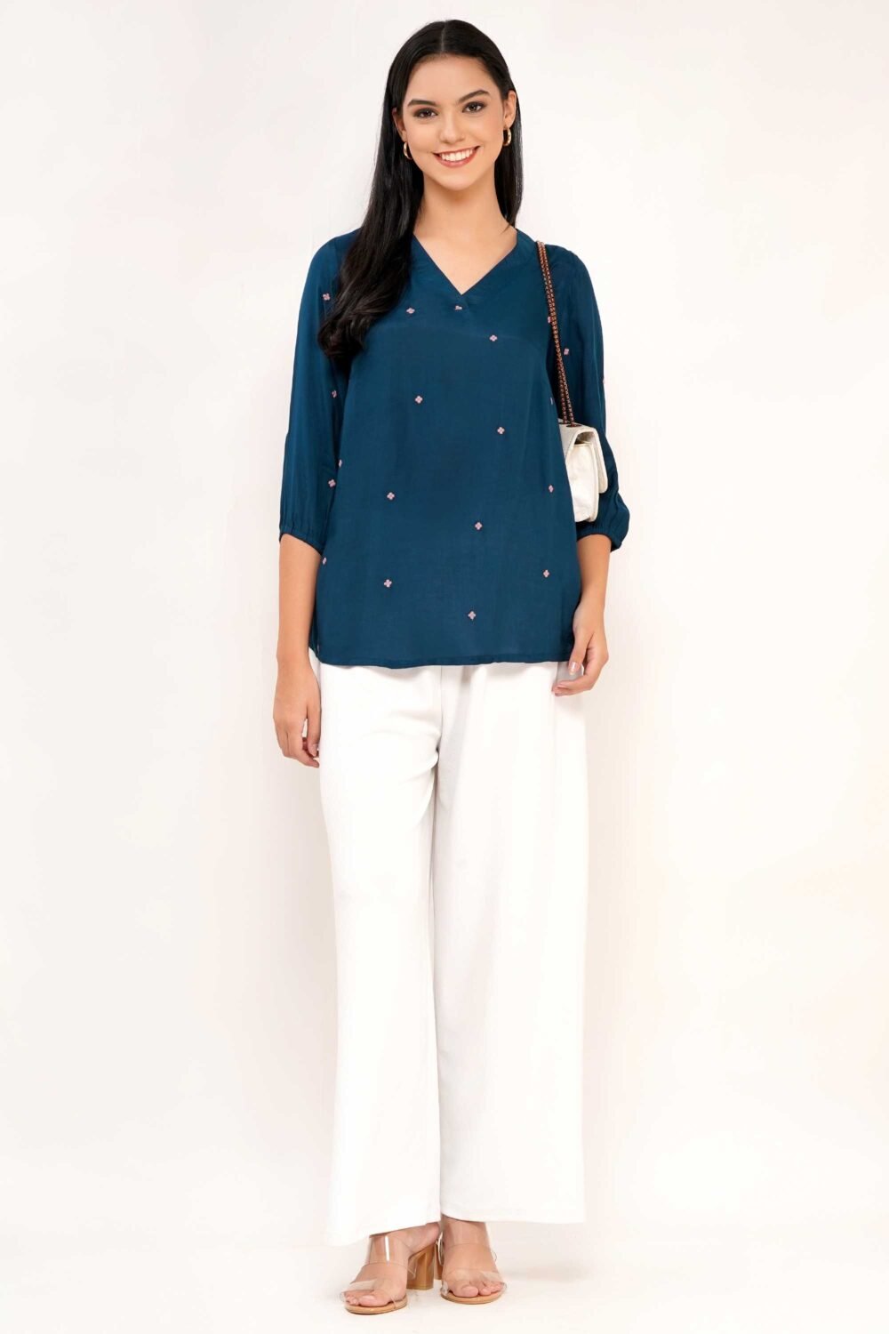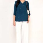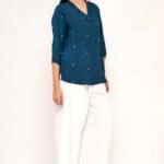 “Viscose Satin Embroidered Top – Floral All-Over Design” machine Embroidered Satin Blouse – Breathable Viscose Fabric” Delicate All-Over Embroidery, Artistic Stitch Detailing