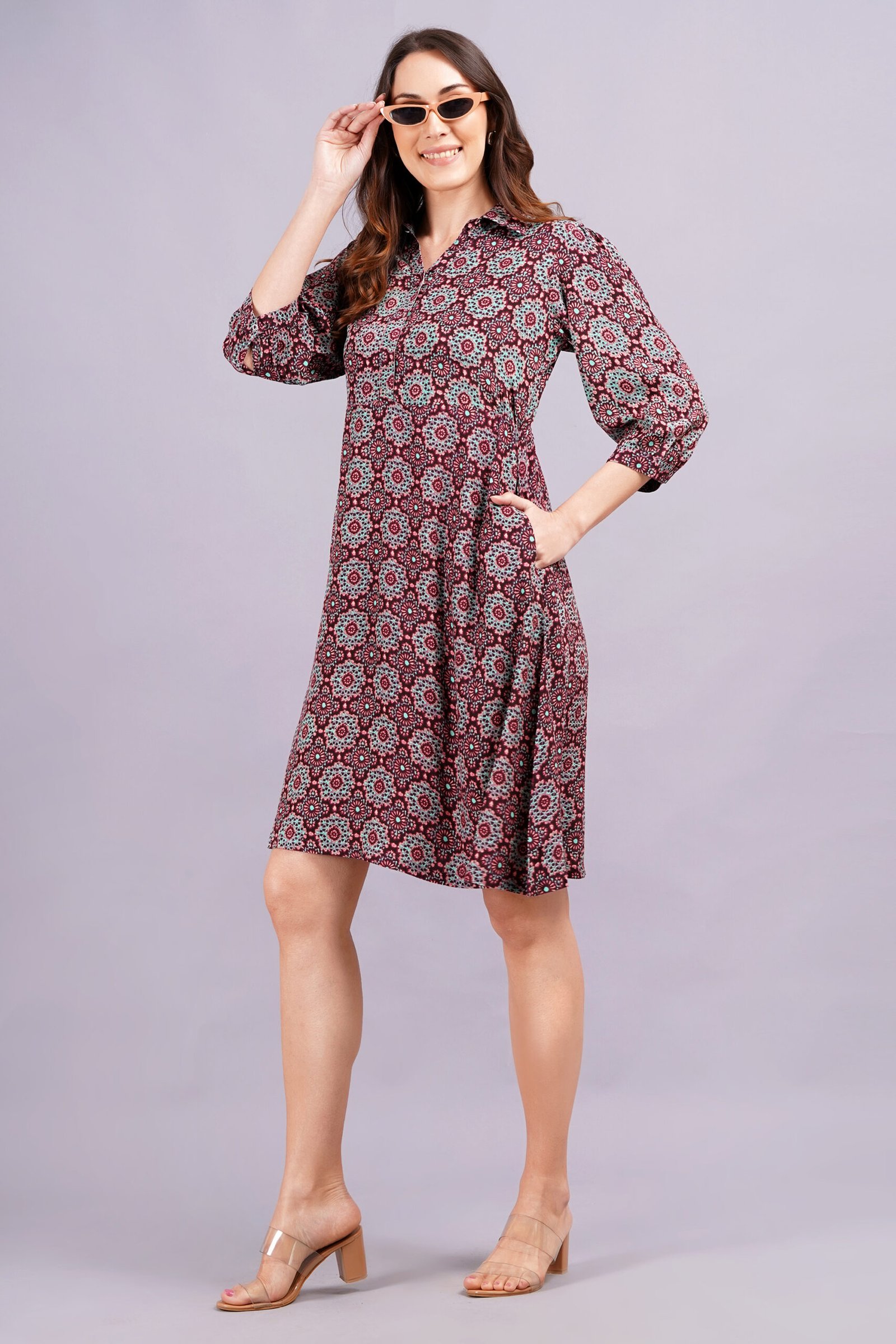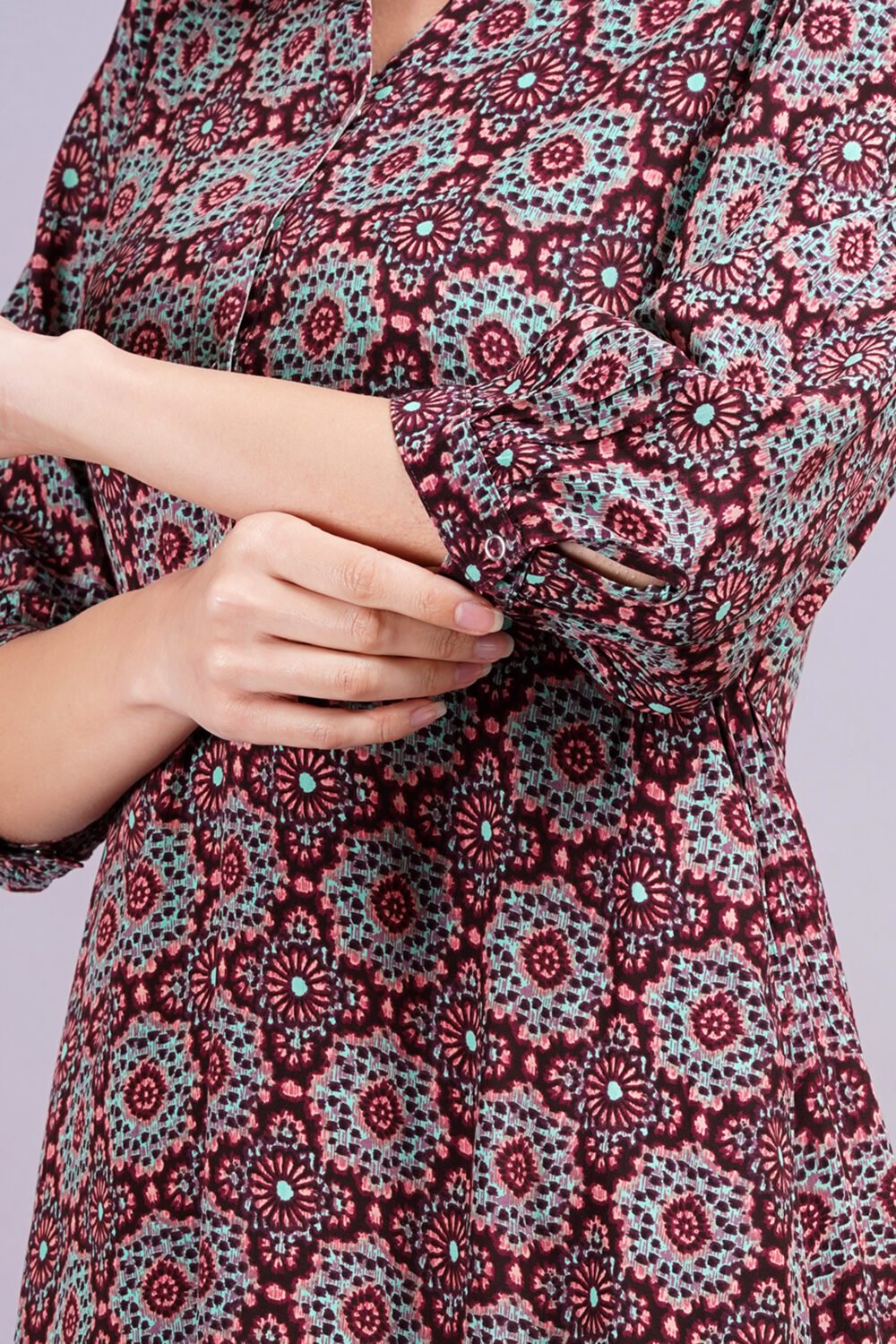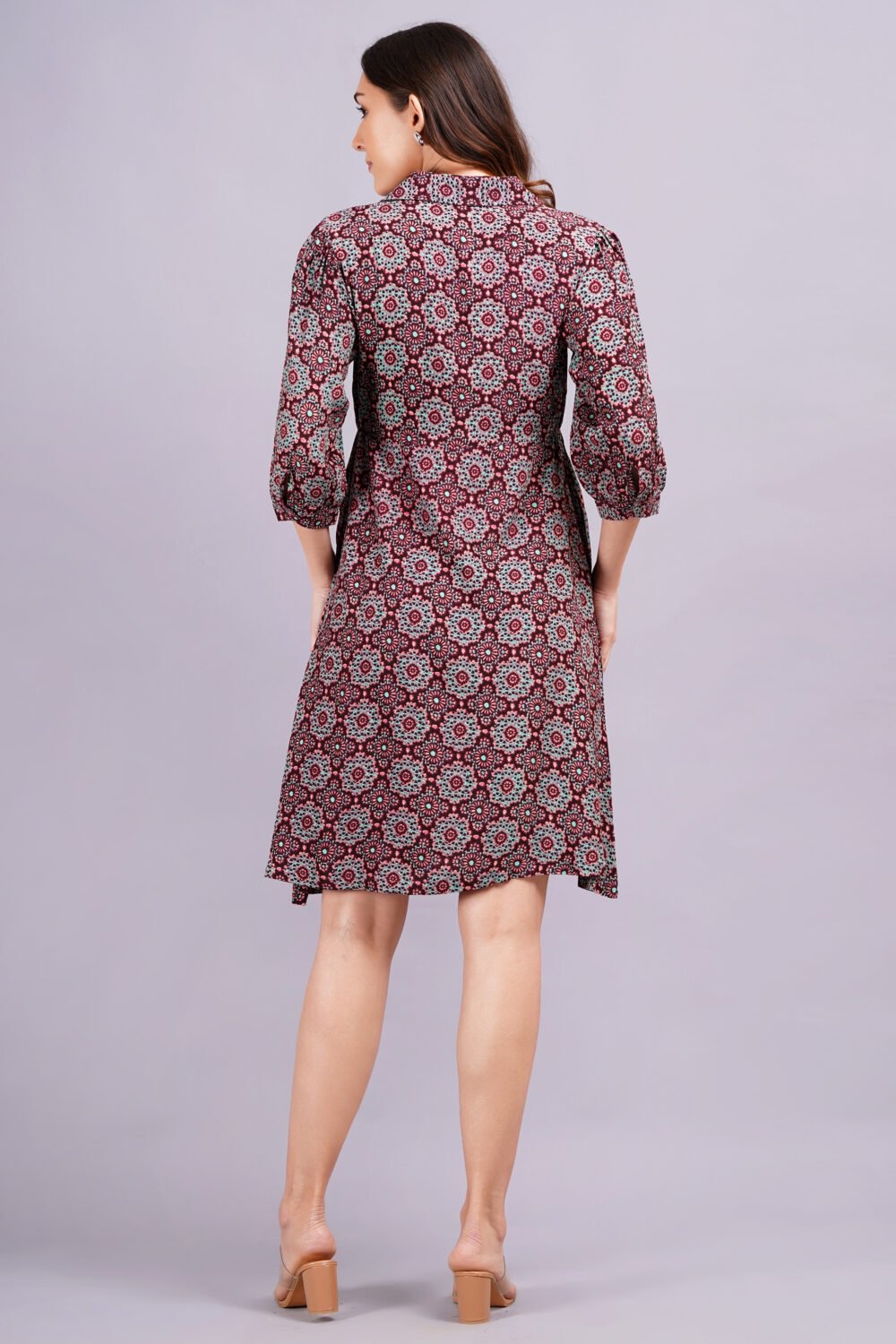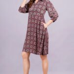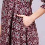 Be the first to review “Women’s Burgundy printed Midi Shirt Dress | Viscose | A-Line | Button-Down”